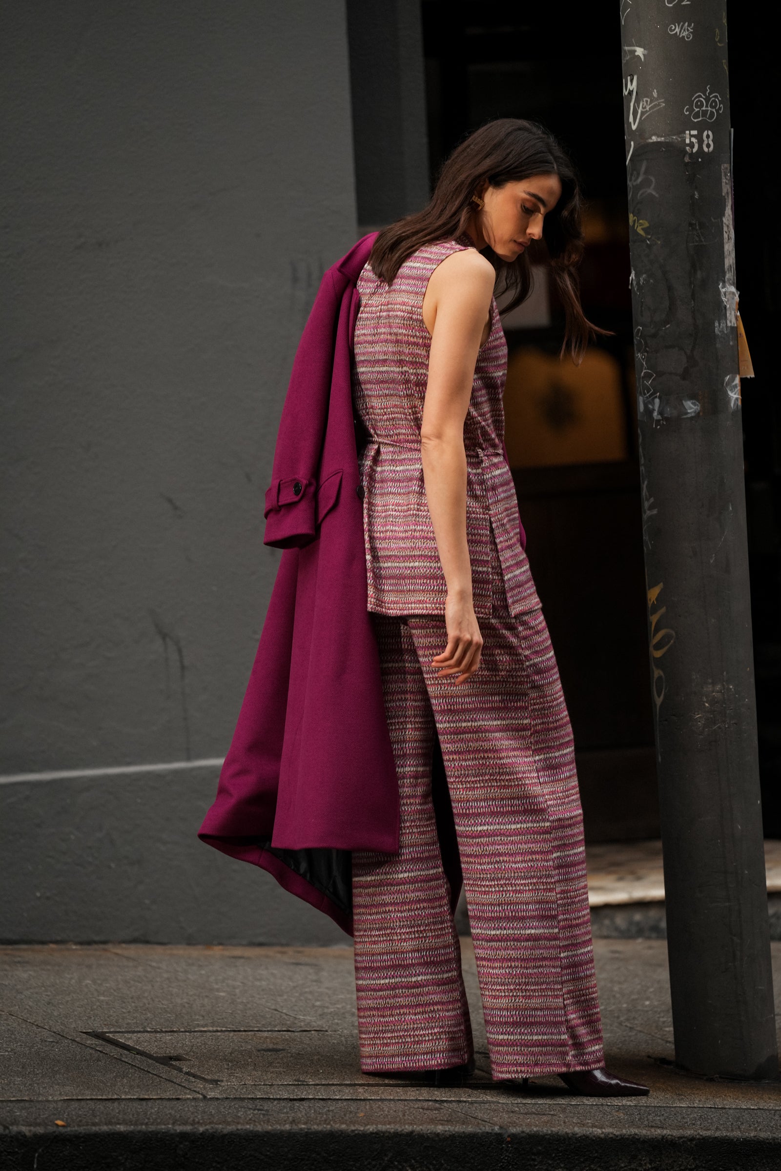 Burgundy Striped Coat