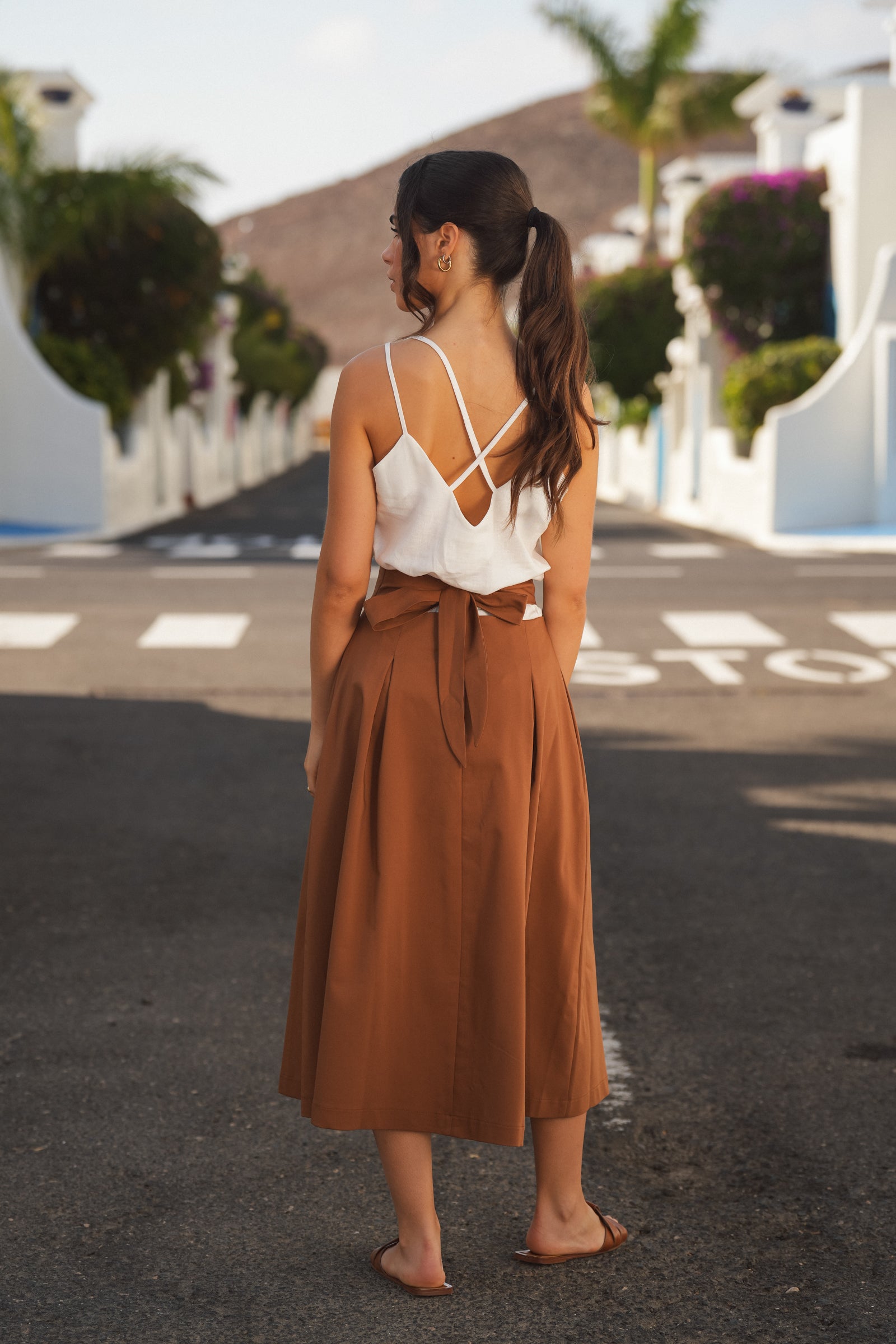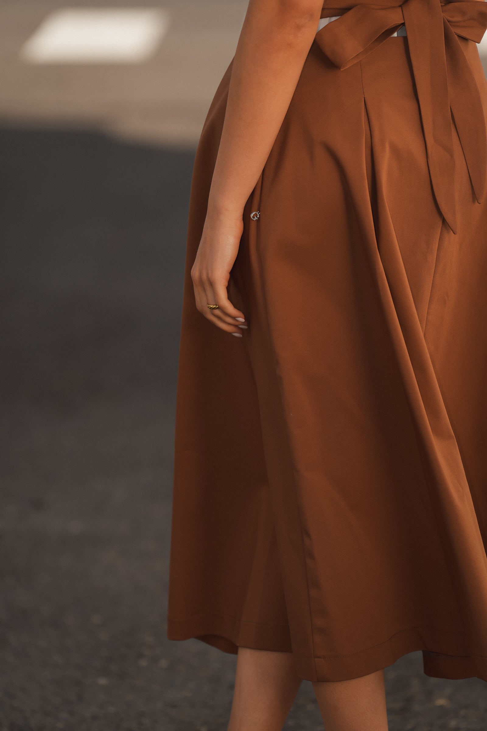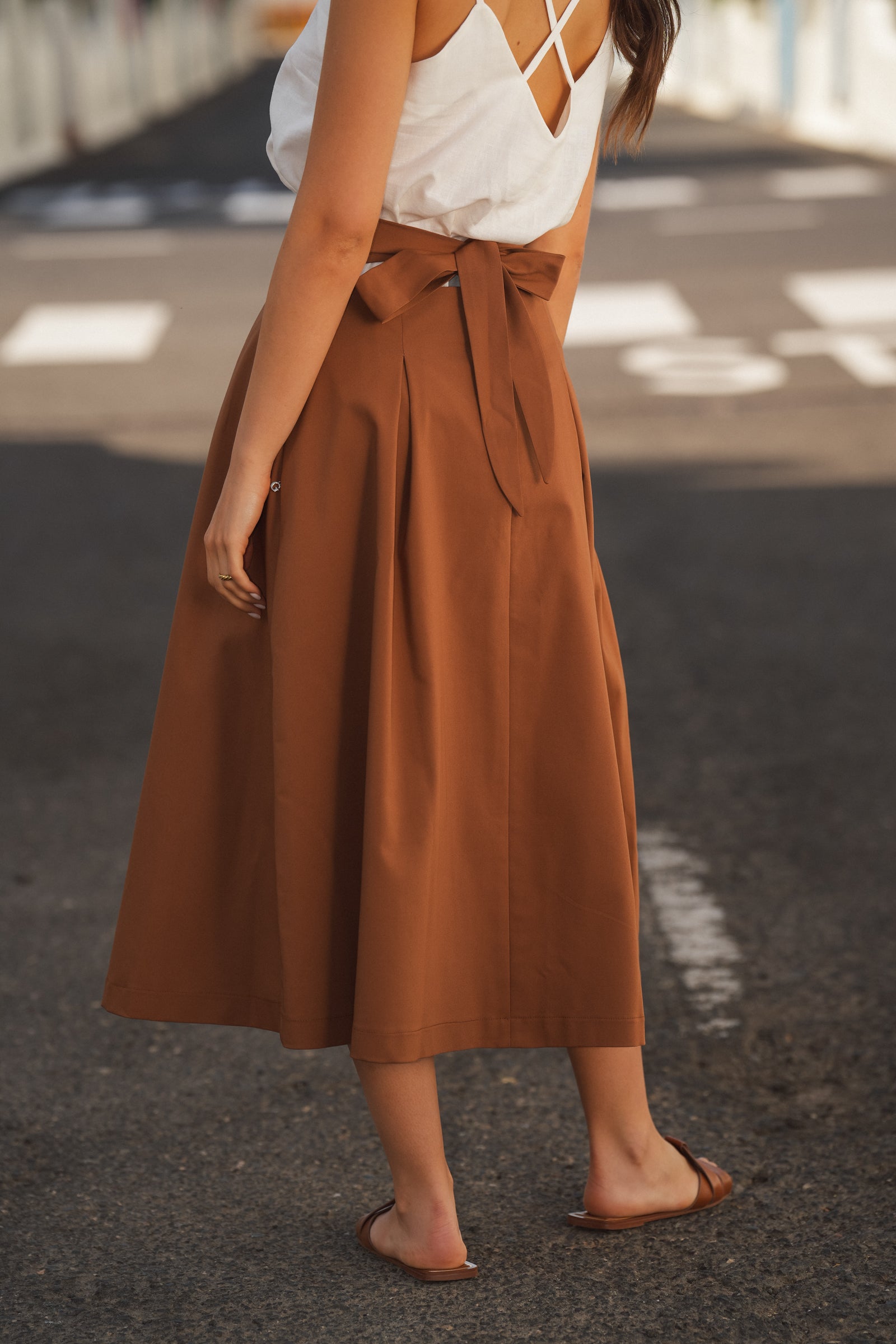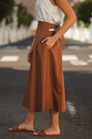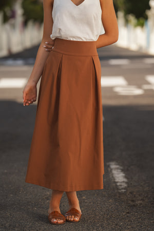 - Saia midi em tom castanho quente