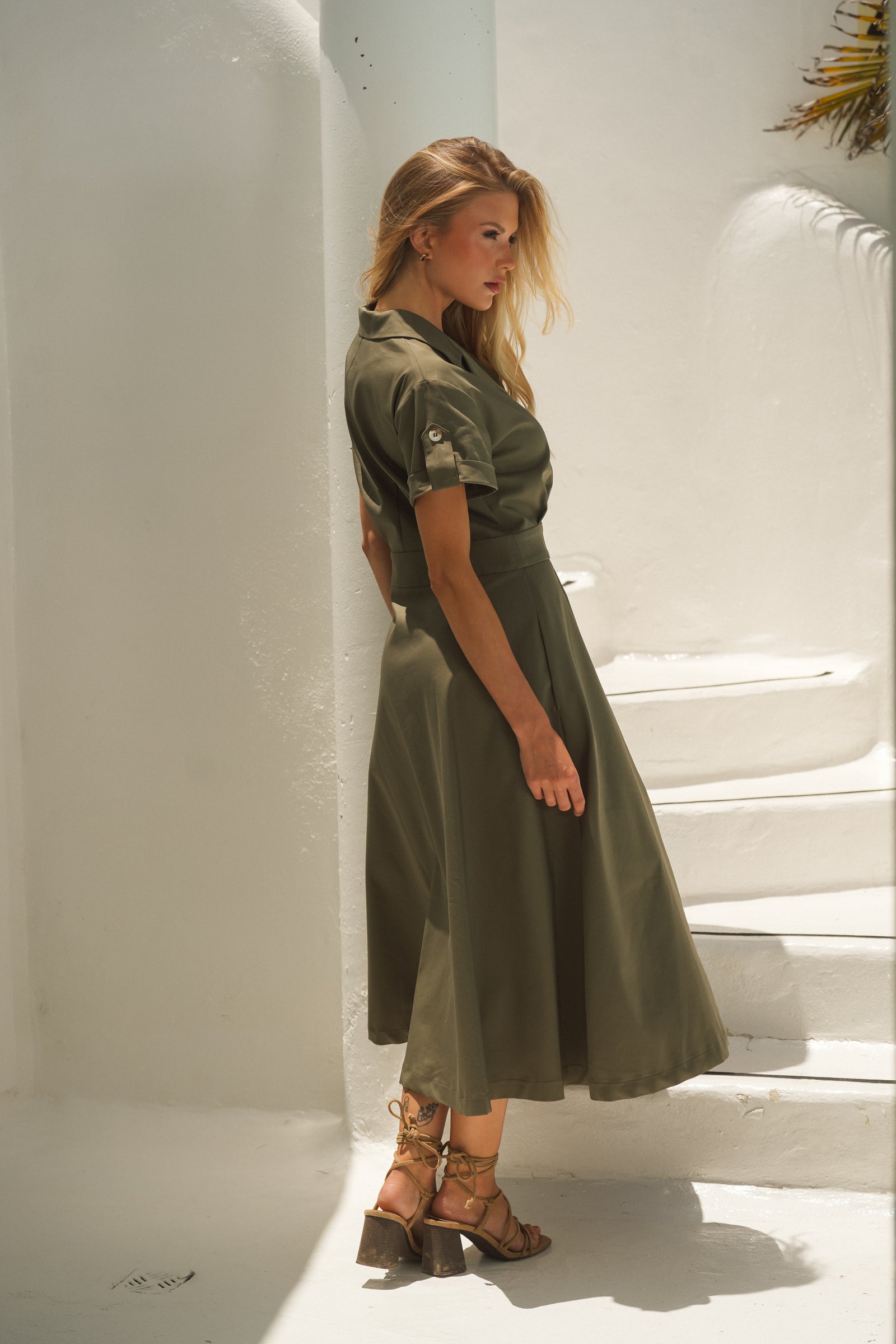 - Vestido camiseiro em tom verde intemporal