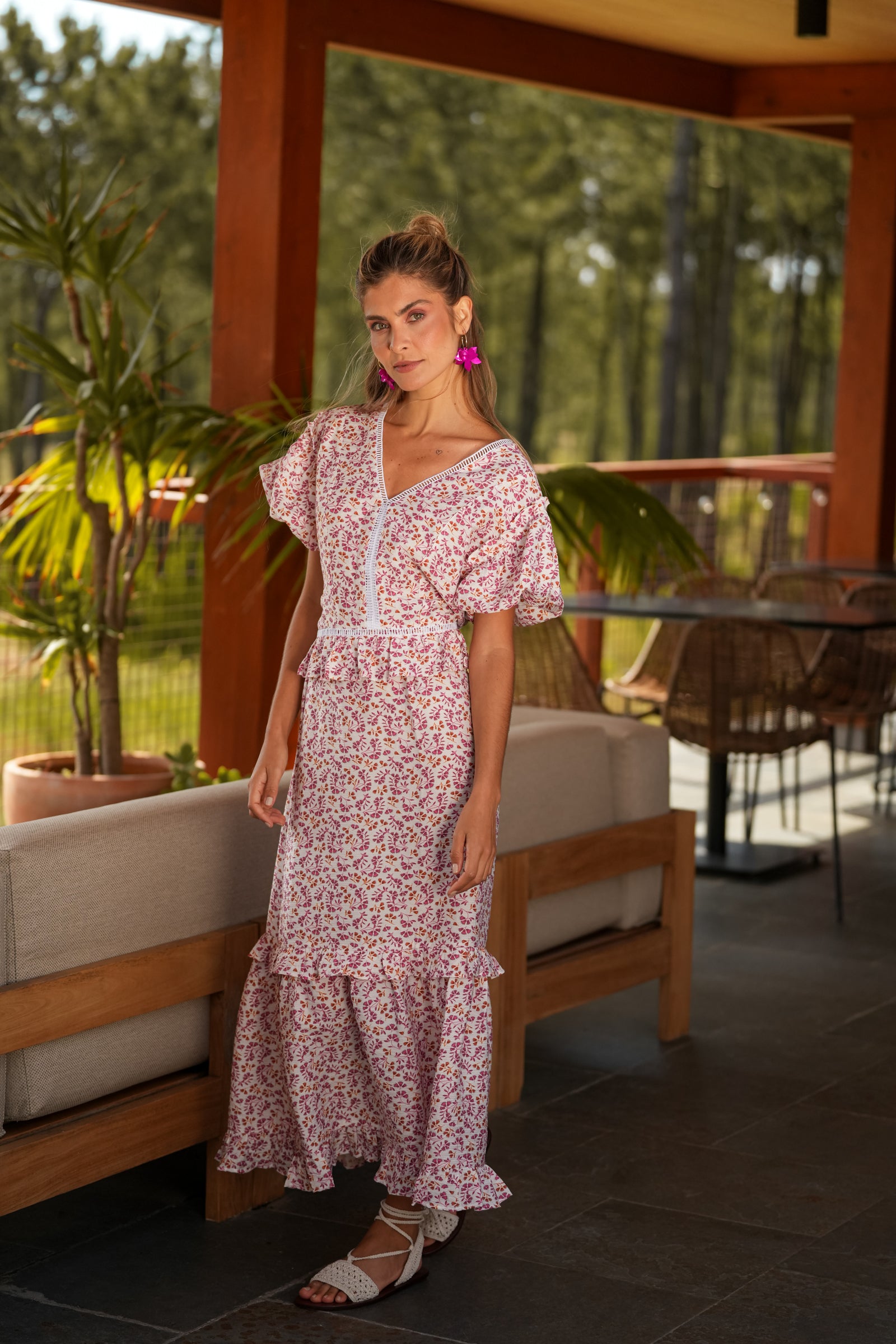 Blusa Decote Bico Flores