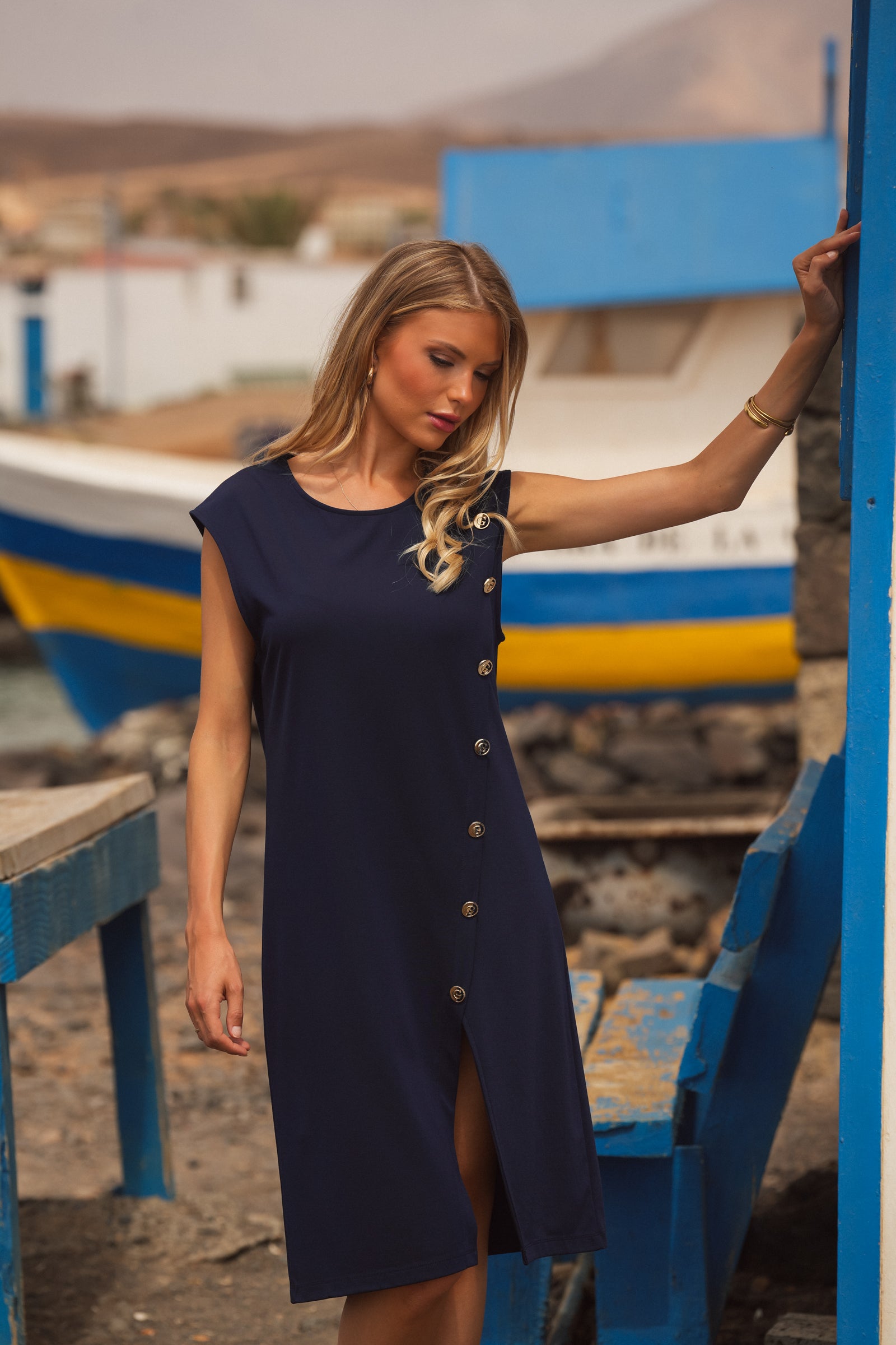 Vestido com Botões Laterais